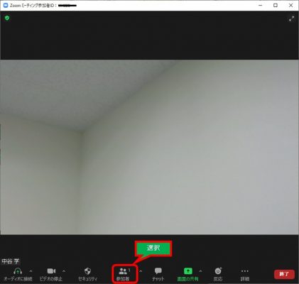 1.ディスプレイにカメラ映像が表示されるので、下段中央の「「参加者」を選択